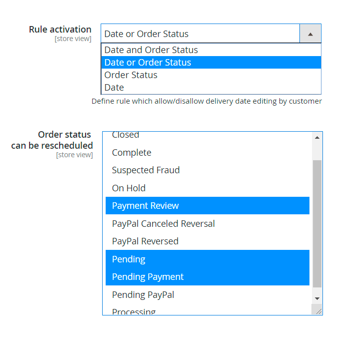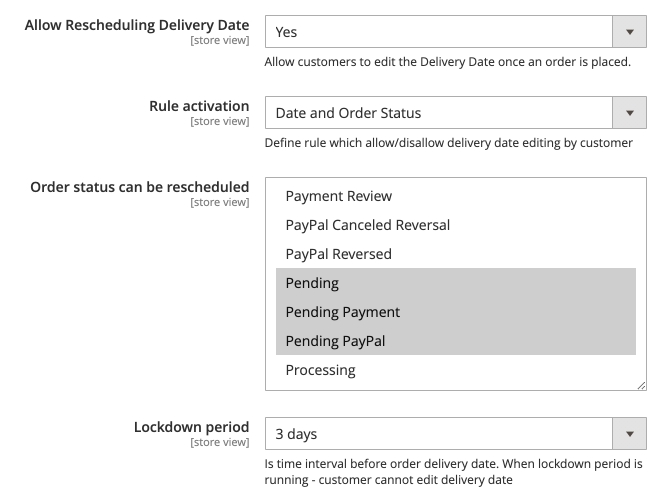 Order status can be rescheduled - choose the order status when the order delivery dates can be modified.