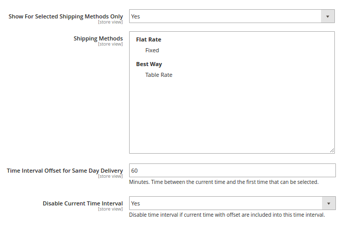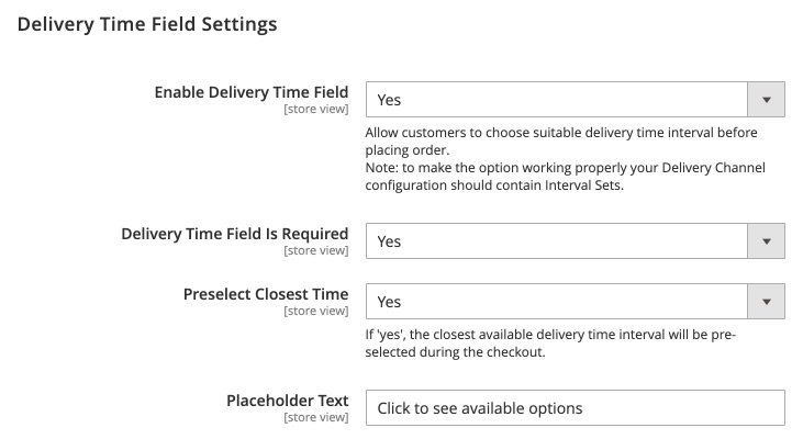 Preselect Closest Time - if set to Yes, the closest available delivery time interval will be pre-selected during the checkout.