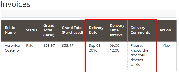 2. Delivery Date on the Invoices grid.