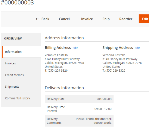 4. Delivery details are added to the order information page for your convenience.
