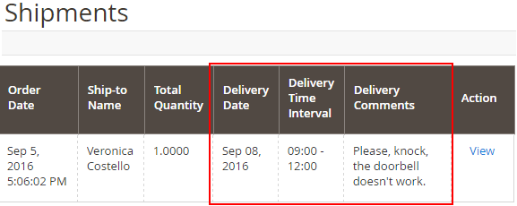 3. Delivery Date on the Shipments grid.