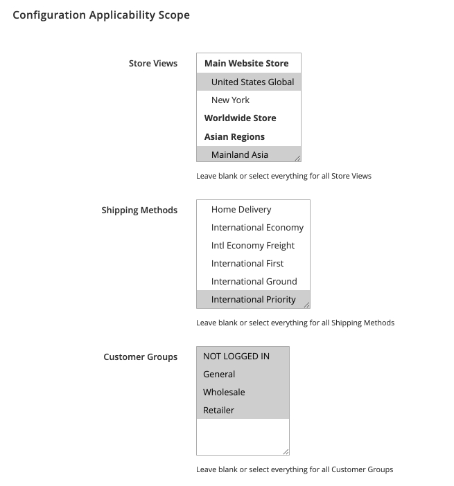 Customer Groups - this configuration will be used for any customer group selected.