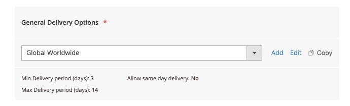 At 'General Delivery Options' settings, please click 'Add' to create your first general delivery preset.