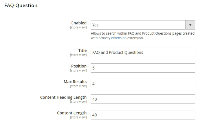 Enable search FAQ pages in the popup, specify the Title, Position and the Max Results. Set the maximal number of characters for Content Heading and Content that will be shown in the search popup.