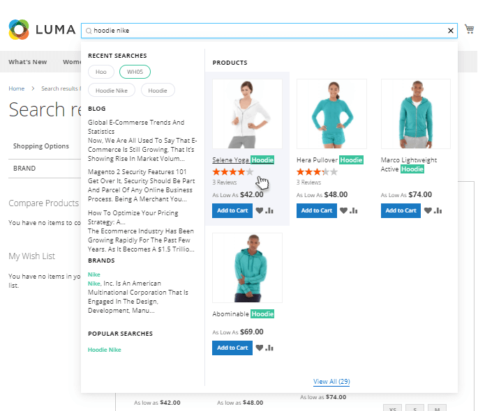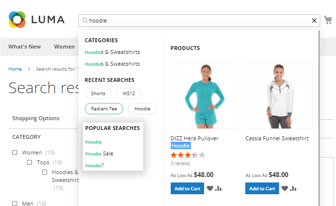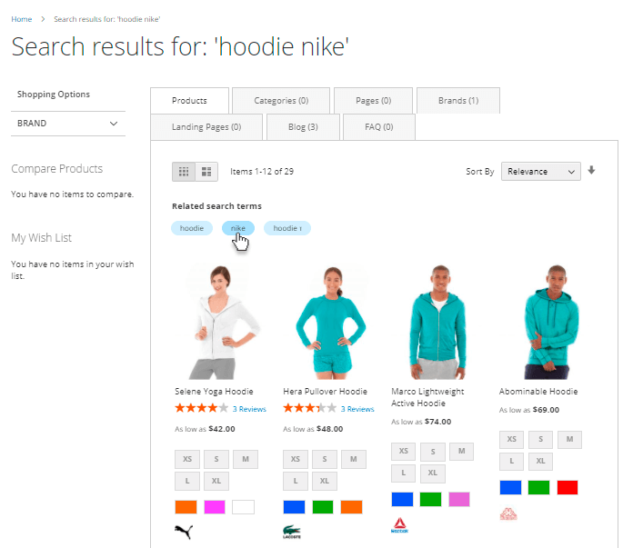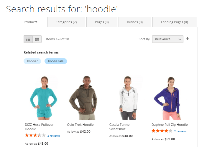 This extension lets store admins construct a seamless search flow with the related search terms. It is highly useful for customers, as it helps to navigate the store with relevant search suggestions.