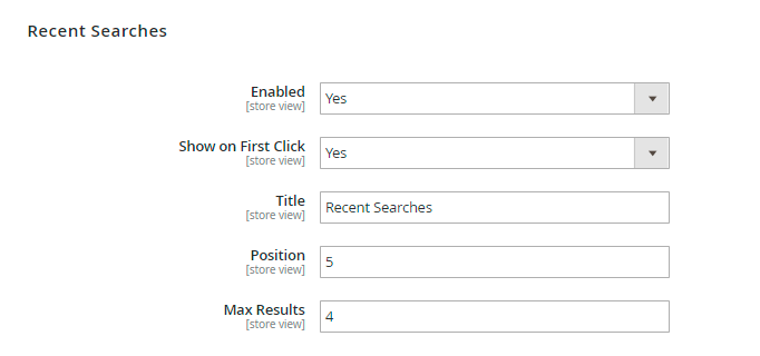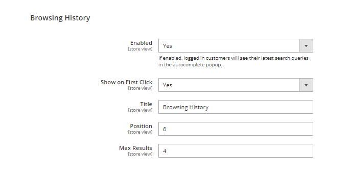Enabled - Set this setting to 'Yes' to allow the logged-in customers to see their latest search queries in the autocomplete popup.
