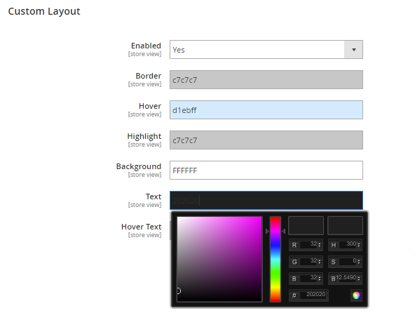 Set colors for a Border, Hover, Highlight, Background, Text and Hover Text using convenient color picker tool.