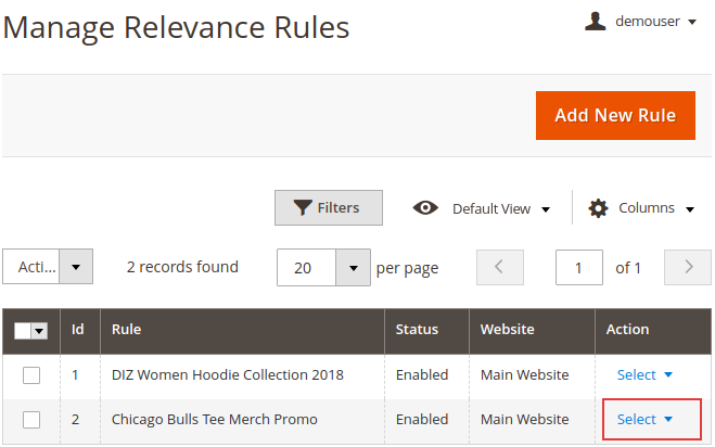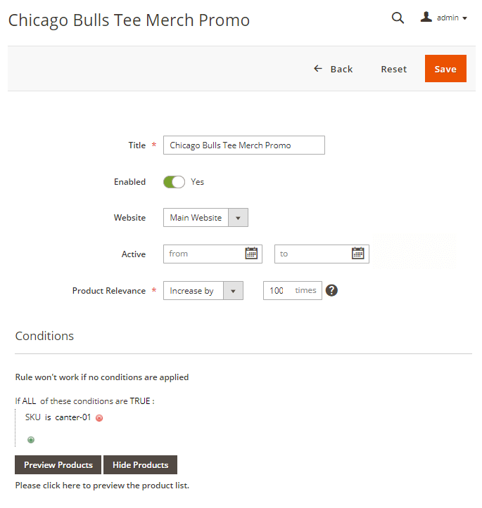 Product Relevance - There are two modes available to work with relevance rules: Increase by and Decrease by: