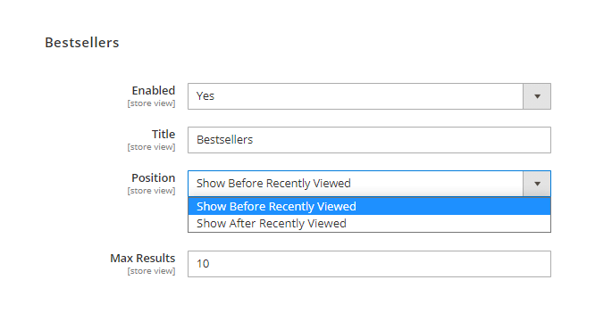 Enabled - Set 'Yes' to enable the 'Bestsellers' widget in the autocomplete popup.