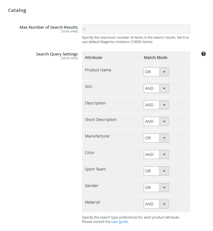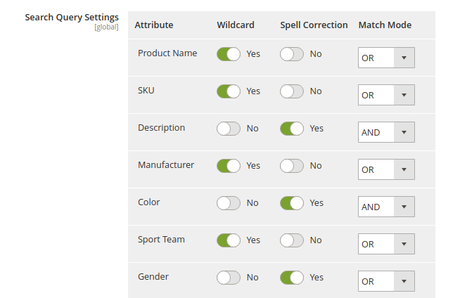 Think over how would you like the keywords in a search query to be combined for each product attribute.