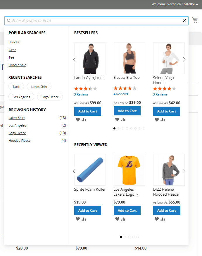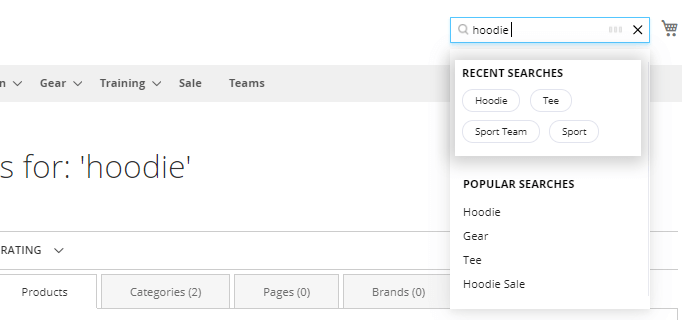 Show on First Click - set the option to Yes to let customers see the Recent Searches block in the autocomplete popup once they click on the quick search field.