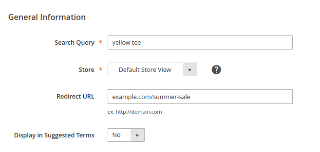 Redirect URL - enter the URL you want to redirect users to when clicking on search results.