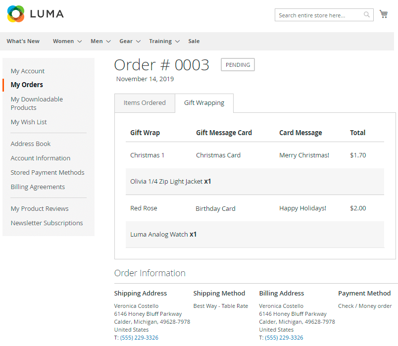 Let customers conveniently view each order wrapping details from their account.