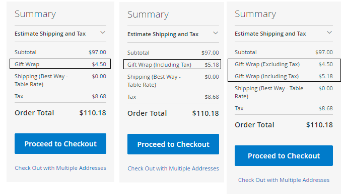 With the extension, you can show gift wrap prices including and excluding taxes.