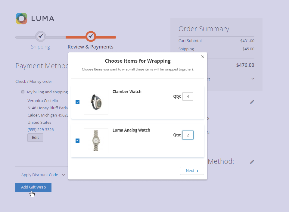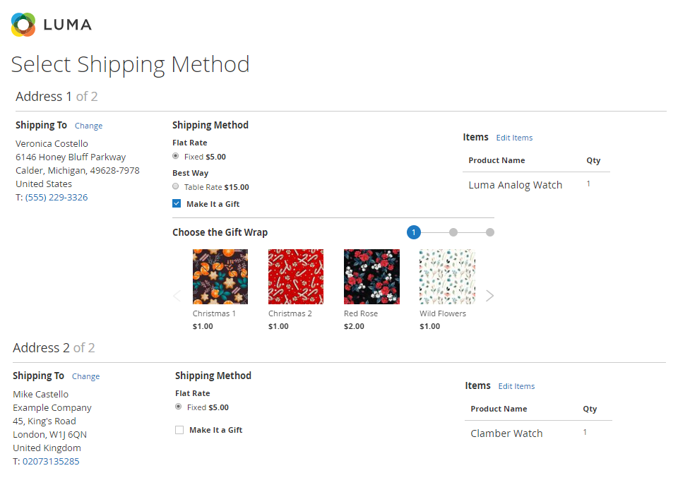 Enable your customers to apply gift wrapping while checking out with multiple addresses.