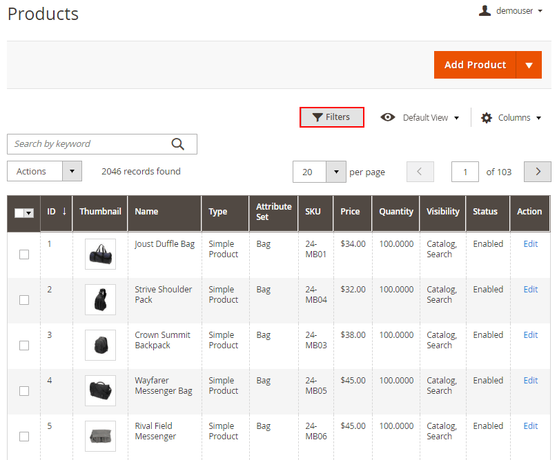 Now it's time to enable wrapping for the products you need. You can quickly do it via mass action by updating product attributes. Please, go to Catalog → Products.
