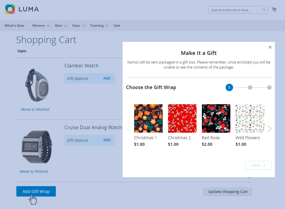 For more details see how the Gift Wrap for Magento 2 extension works.