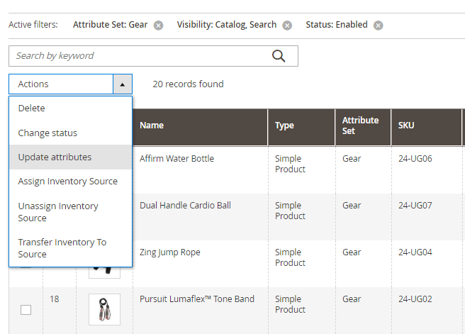 Apply filters to easily pick out the products you need. After that, please click Update attributes in the Actions dropdown window.