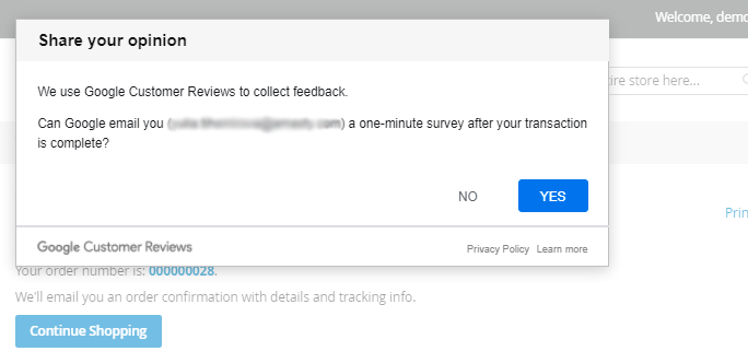 Here you can configure a popup that is displayed by Google to collect emails. In this popup, a customer can agree to leave a review or deny it.