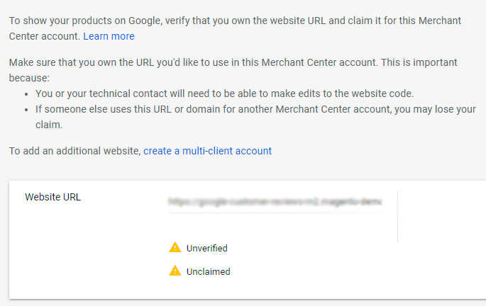 Save the changes and hit the verification button in your Google Merchant Account. When a store is verified, claim URL using the appropriate button.