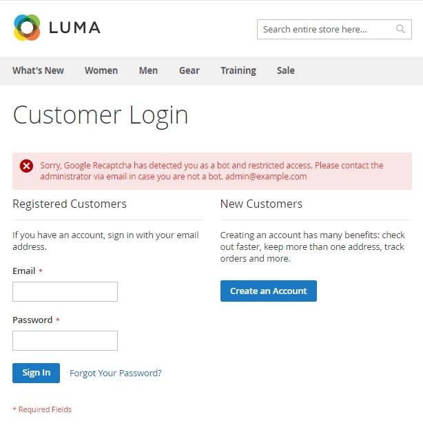 Error Message - customize the message that will be displayed in case the reCaptcha detects a bot.