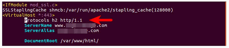 2. Then edit your Apache virtual host file. If you enabled HTTPS with Let’s Encrypt, then the SSL virtual host is created as a separate file ending with le-ssl.conf.