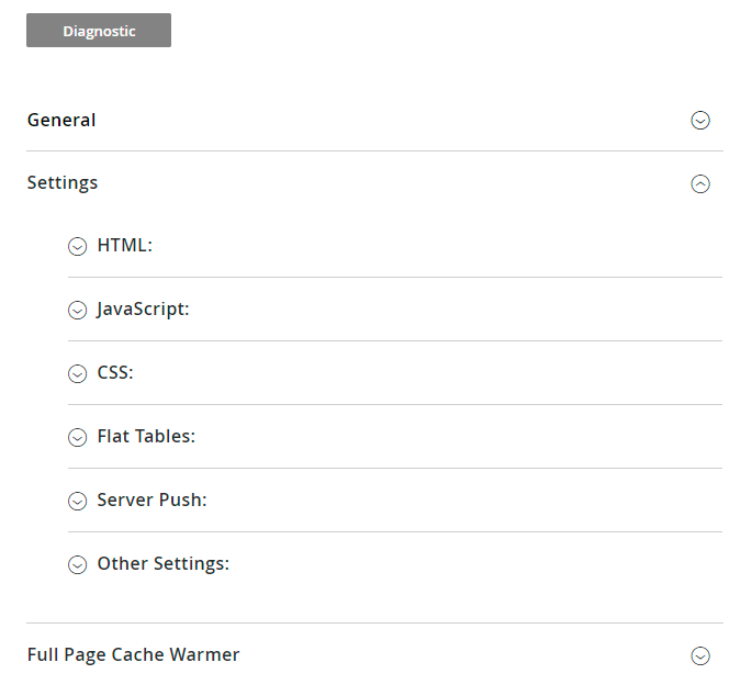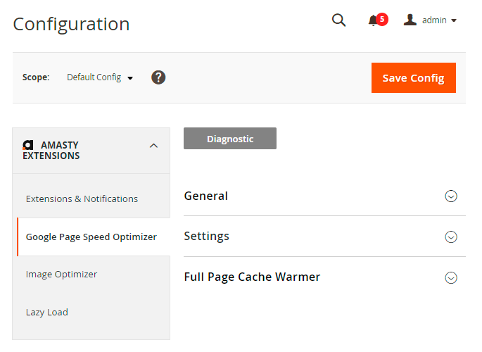 Before starting the optimization, check your website current Google score right from the admin panel using Diagnostic option.