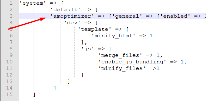 2. Find the app/etc/config.php file. There you will see the list of installed modules. To create an optimization file, you will need the following massive: