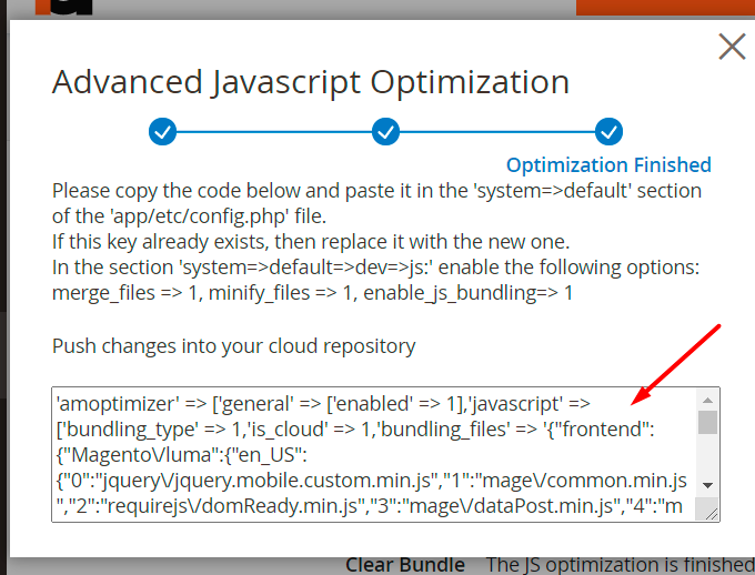 4. The extension will generate the code that should be put into cloud repository: