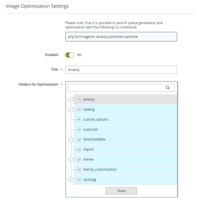 Optimize Images for Enabled Products Only - enable this option if you want to create smaller copies for the images of enabled products only. It helps to save extra space on your server and speed up optimization.