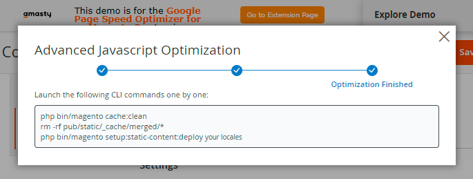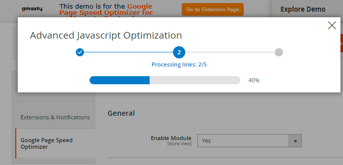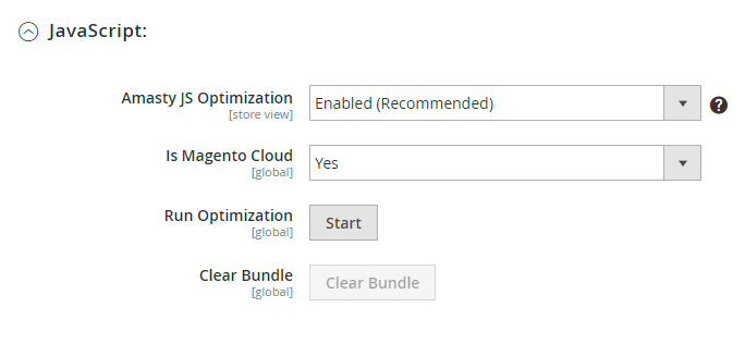 To run the optimization, set the Amasty JS Optimization option to Enabled.
