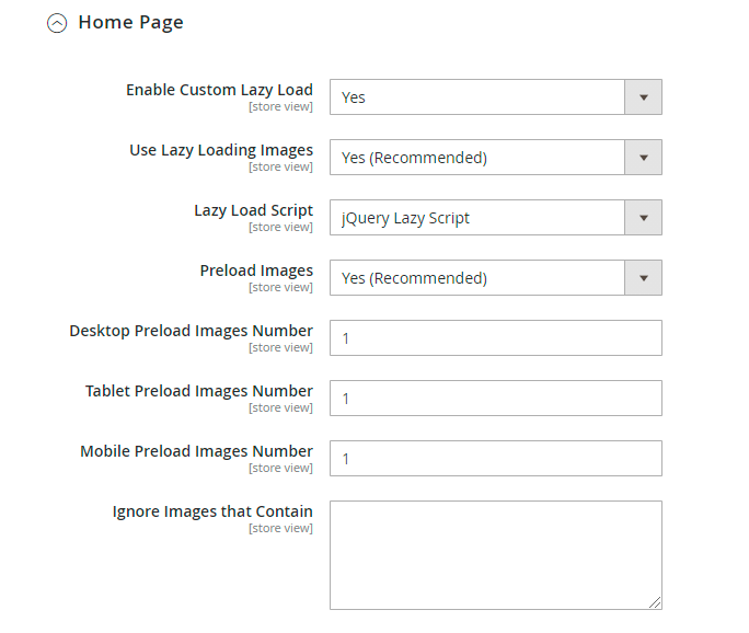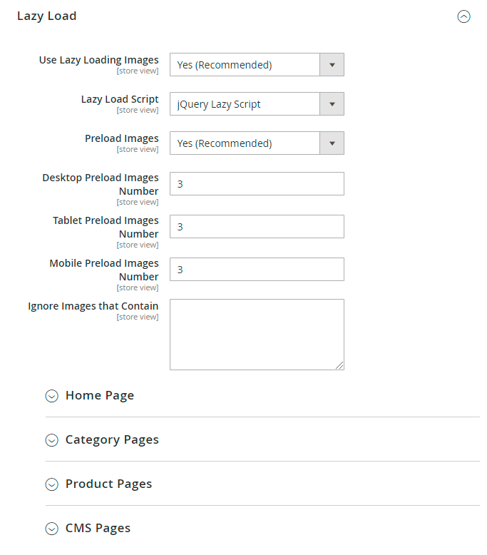 Use Lazy Loading Images - set to Yes to make off-screen images load only when a customer scrolls to them. It prevents pages full of images from lagging.