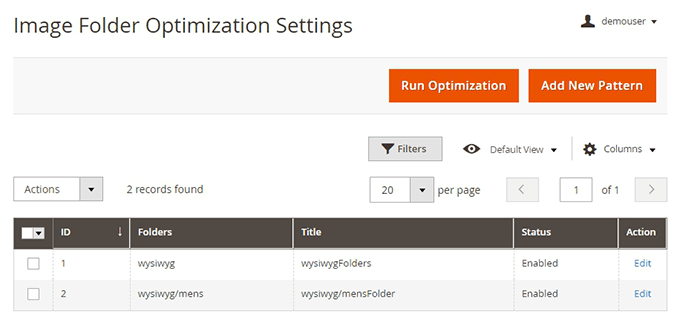 Navigate to Content → Image Optimizer → Image Folder Optimization Settings. To create new set of rules, please click on the Add New Pattern button.