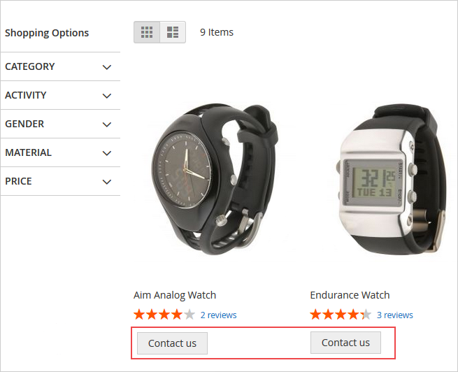 Hide prices on category pages and display custom buttons instead of the “Add to Cart” option.