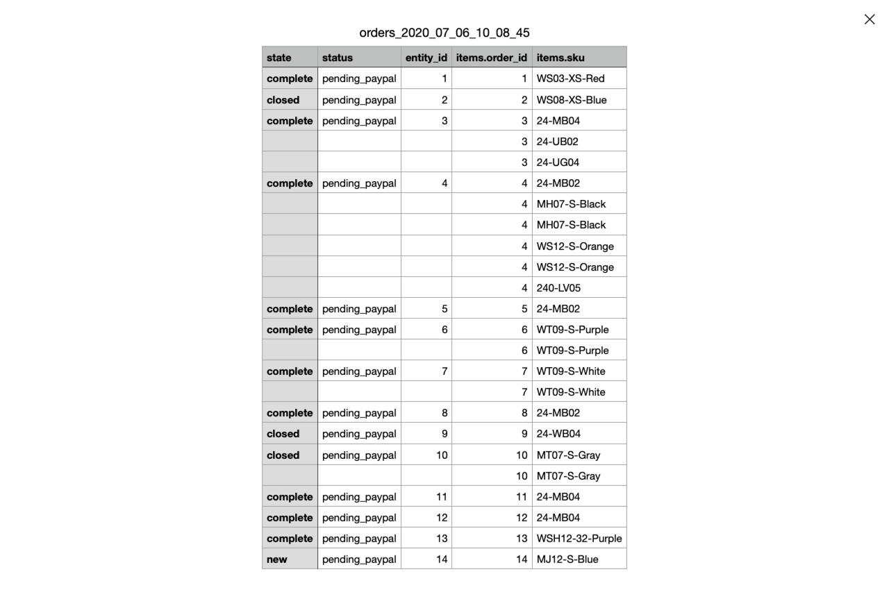 Merge Rows into One - data from multiple rows will be merged into one cell if enabled. The character that delimits each field of the child rows is customizable. Check the GIF in a demo to see how it works.