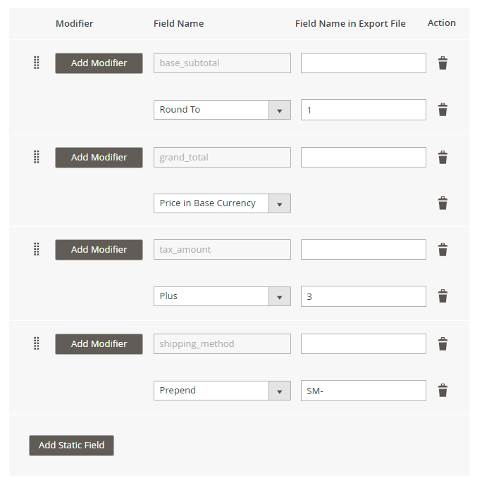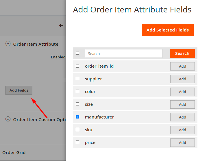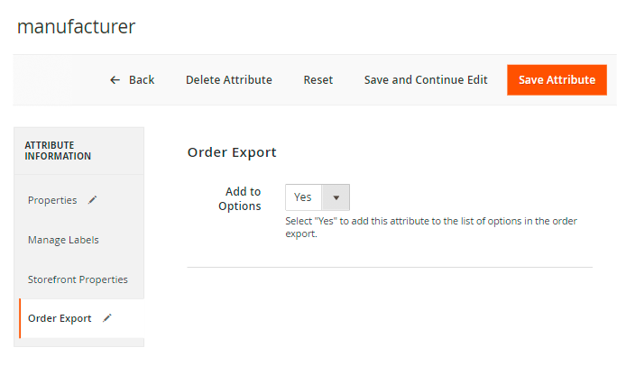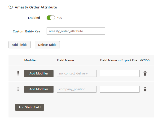 Export orders component is also compatible with Amasty Order Attributes extension. Thus, you can find and add custom order fields to the export file.
