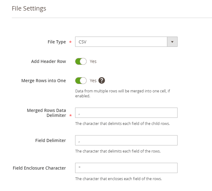 If Store Exported File On Server is enabled, provide File Path and File Name on Server. The file will be saved in Magento 'var' directory relative to the specified path.