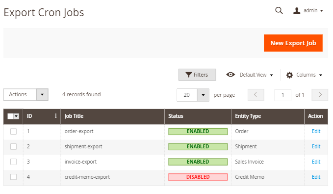 Also, the extension includes Amasty Cron Jobs features: you can create regular cron jobs to export or import any available entity.