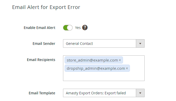 Enable Email Alert - set to Yes to notify the recipients about failed exports.