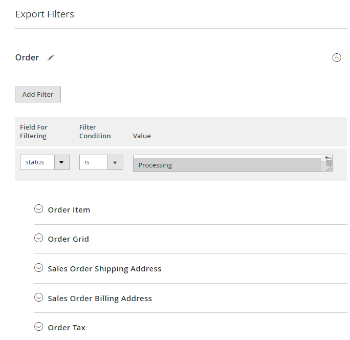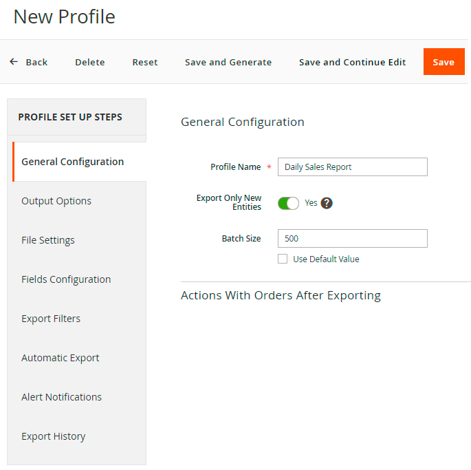 Export Only New Entities - the previously exported orders will be skipped if the setting is enabled. The option is useful in case you export the profile regularly and only newly created orders are needed.