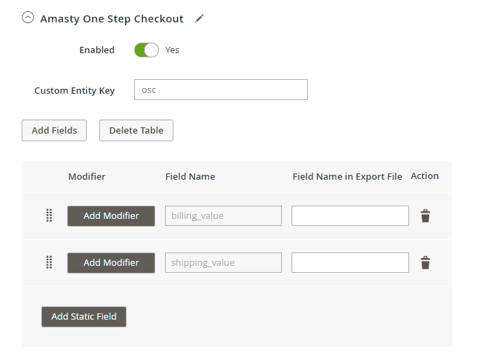 The extension supports Amasty One Step Checkout so that you could add more order details from your checkout page to the export file.