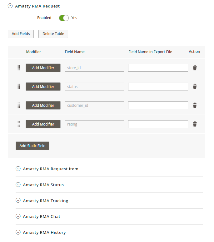 Go to Stores → Configuration → Amasty Extensions → Export Orders/Products/Customers.