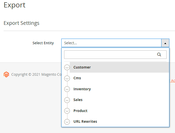 This solution is helpful to perform one-time operations as it has a simplified UI. You can easily export any available entity in one place. There are 2 different tabs for import and export operation, as their logic is different.