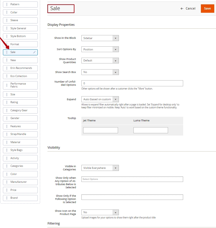 Position - Set the display position for your frontend filters block. This setting defines the position only among the Group Attribute Options (created within the same attribute). It doesn't affect the positioning of common attribute options in the filter.
