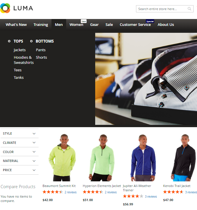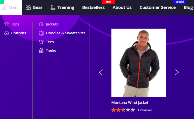 Apply dynamic and flexible navigation menu to your webstore with Magento 2 Mega Menu extension. Add various types of content right to the menu bar to attract customers’ attention and enhance their shopping experience.