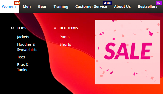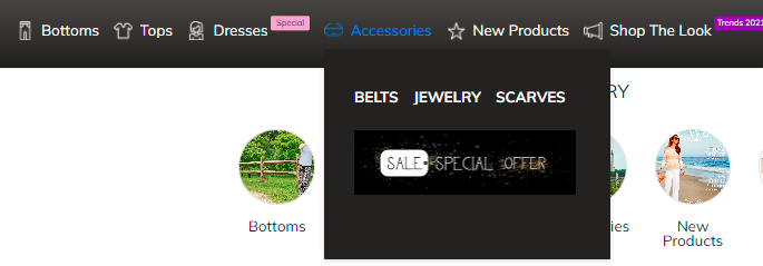 Add a special MegaMenu widget to the drop-downs to promote your new, featured or best-selling products right in the menu.
