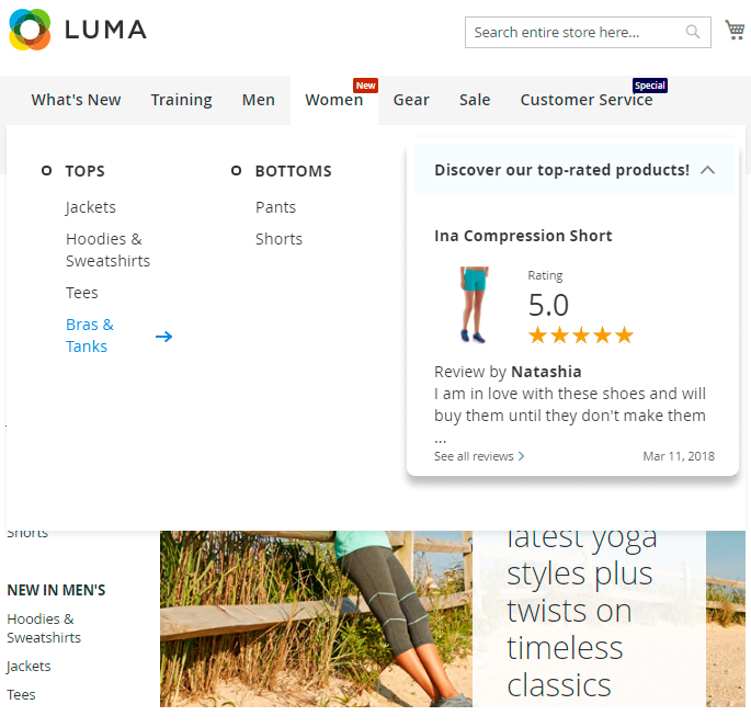 Increase the number of purchases by show reviews in menu with Amasty Advanced Product Reviews for Magento 2.