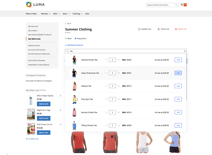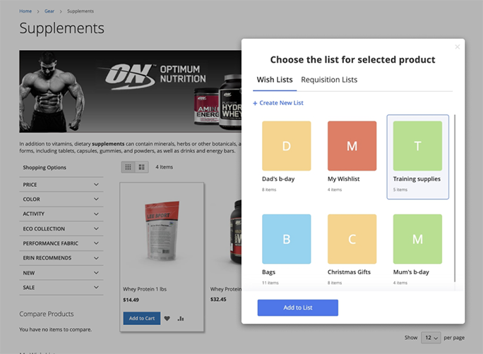 The Multiple Wishlist extension combines two list types in one module. With the extension, customers can create both wishlists and requisition lists.