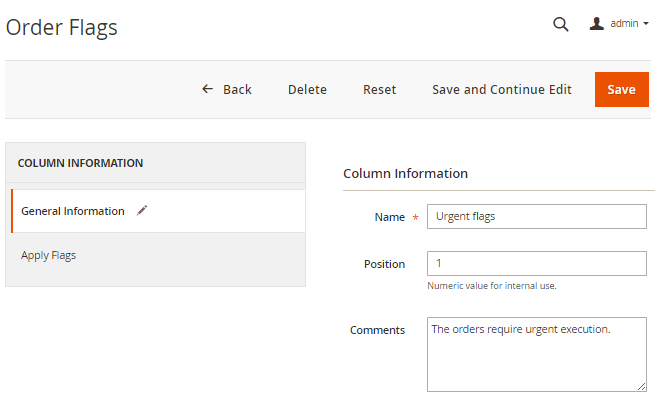 You can add columns with additional labels to the order grid. To do this, please go to: Sales → Order Flags → Columns