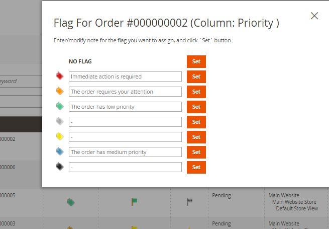 Press ‘Set’ button next to the appropriate flag to assign it to the order. If it's necessary, you can edit the flag comment that will be saved only for this order.